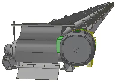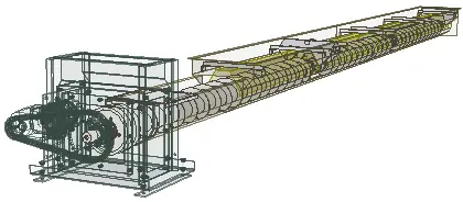 Screw conveyor can be used to bring the abrasive to the base of the elevator. A transverse screw conveyor is usually located at the end of the blast cabin and lower than the longitudinal screw conveyors. Screws (almost always) come with funnels, so that abrasive is automatically collected over a larger area.