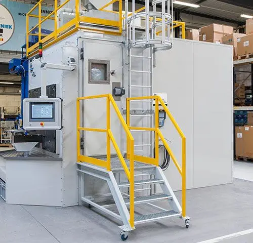 This client required a shot peening solution with high productivity against low costs. Moreover, objects of various shapes and sizes had to be treated in a random sequence.