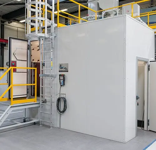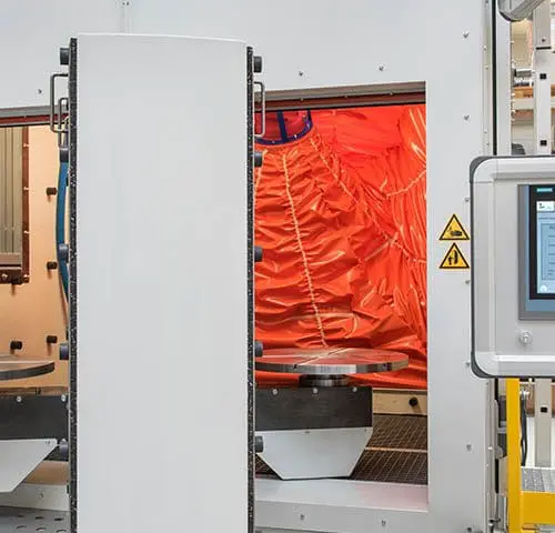 or the quick exchange of work pieces, the installation was fitted with two positioning tables. So while one product is being treated in the machine, the next object is being prepared on the positioning table outside the machine. This creates a virtually non-stop process with high productivity and low costs.