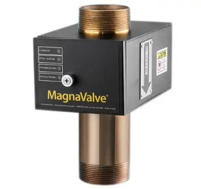 The 700-24 MagnaValve® is a normally closed valve that regulates the flow of non-ferrous media. The MagnaValve’s built-in sensor measures flow rate and, together with our specially developed software (no separate controller needed) provides accurate and repeatable flow rates. Ceramic bead and glass bead can be used in this valve. Other non-ferrous materials, such as Aluminum Oxide (AlOx), may also be used by special arrangement.
