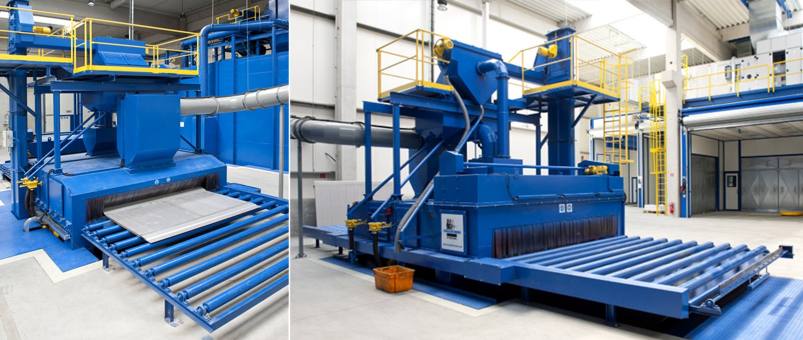Along with the overhead hanger type shot blasting machines, a roller conveyor type blasting machine offers suitable solution to shot blast such plate like products.